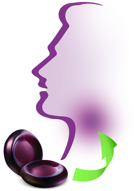 Po zwilżeniu pastylki za pomocą śliny następuje reakcja ze składnikiem śluzu – mucyną (stąd nazwa „mukoadhezja”)1.