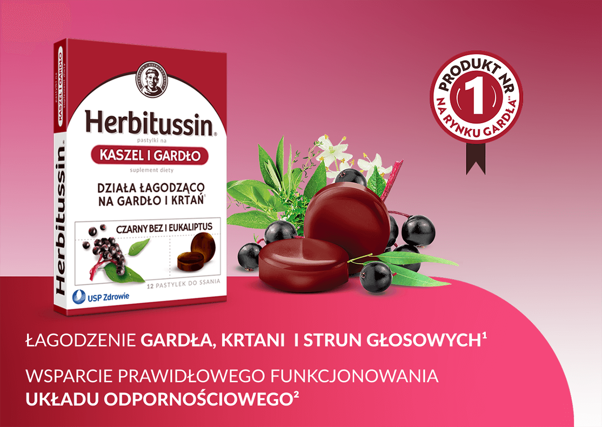 Pastylki zawierają m.in.: czarny bez, eukaliptus, witaminę C oraz specjalnie dobraną kompozycję 14 ziół.